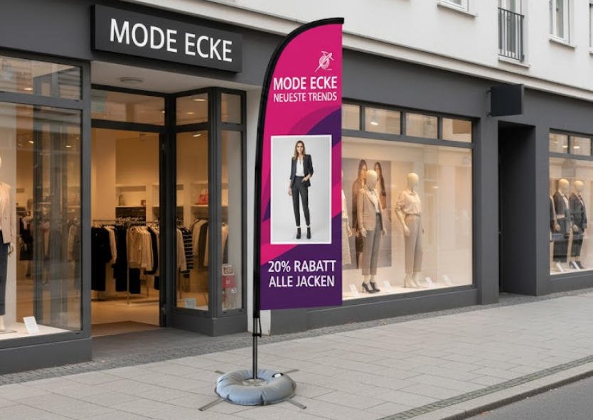 Werbung Fahne individuell gestalten und online bestellen: So wählst du Typ, Design und Material für maximale Sichtbarkeit deines Unternehmens.