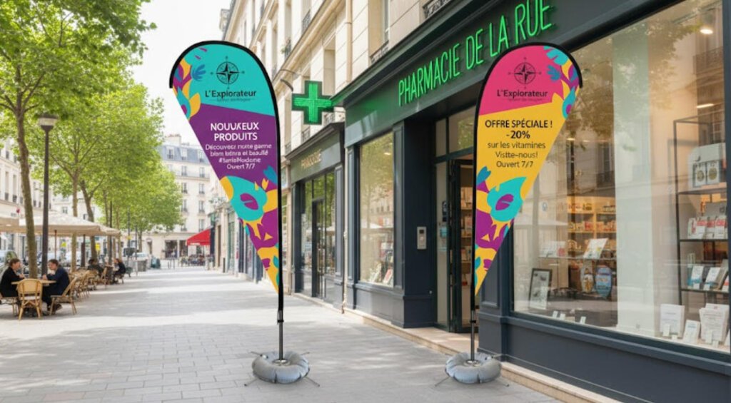 Tropfenflaggen überzeugen durch auffällige Form, hohe Windstabilität und flexible Einsatzmöglichkeiten – ideal für effektive Werbung im Außenbereich.