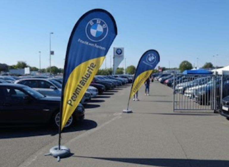 Nutze beidseitig bedruckte Dropflags. Dein Stand fällt sofort auf. Die Fahne steht frei und zieht Blicke aus allen Richtungen an.Sportevents und Outdoor-Veranstaltungen: